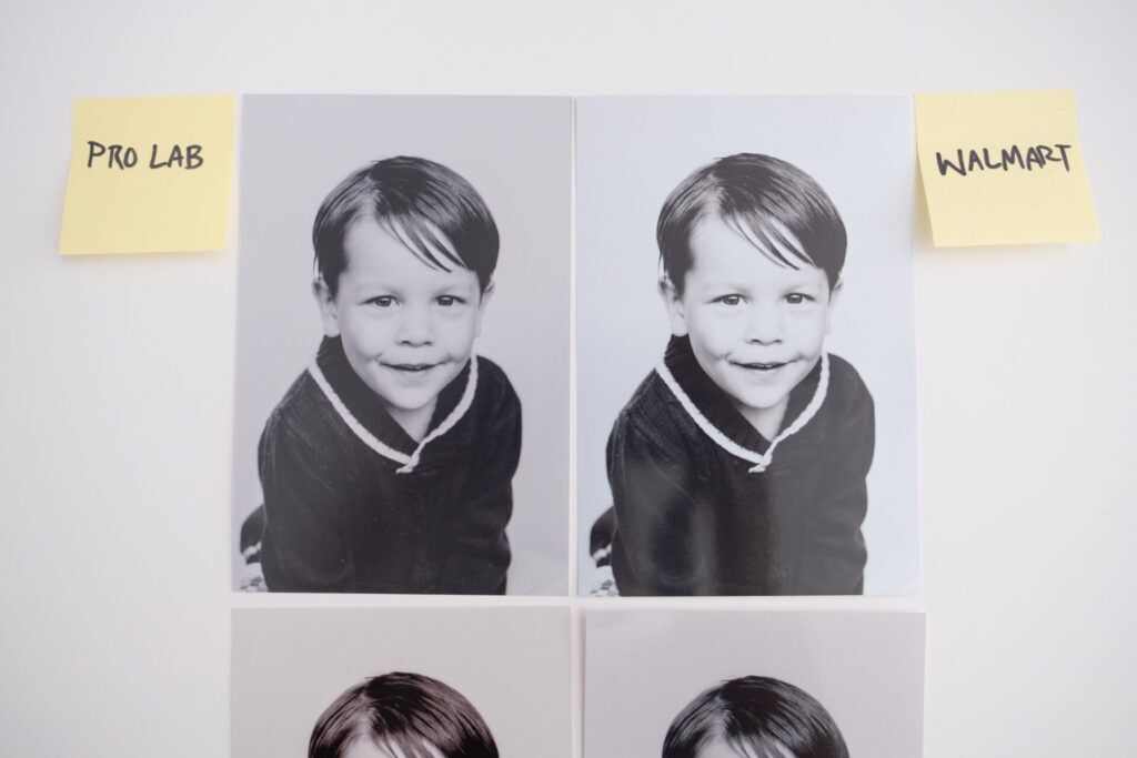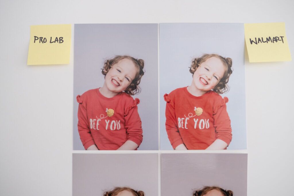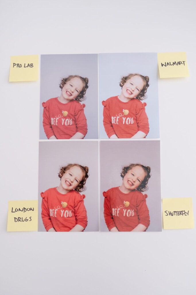 Most photographers will offer some packages that include prints, or have a professional print lab that they send your photos to. This is always the best option, but it is only accessible if you have a photography business. Professional print labs use high quality photo paper that are typically archival quality so it can withstand the test of time! Their printers are also calibrated to print true to colour. We will use my professional lab’s photo prints as a control and compare the 3 other print labs against it. * I took photos of the 4 different labs as best as I could! I realize it would be more accurate if I used a scanner, but this will do for the time being!